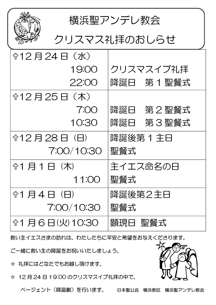 クリスマス礼拝のご案内 2025年12月12日 最終更新日時 : 2025年12月12日 webmaster 主のご降誕を祝うクリスマス礼拝にどうぞお越しください。 ご一緒に救い主み子イエスさまのご降誕をお祝い致しましょう。